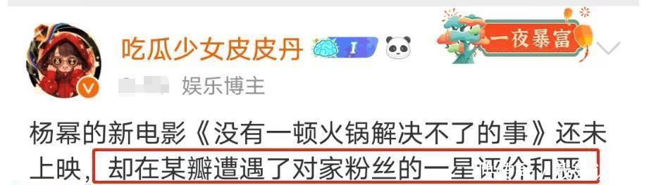 更倒霉的是,这些给一星评价的东说念主被揭泄漏来都是其他明星的粉丝,他们粗豪这么作念。只消杨幂有作品要上映,他们就会领受这种步履,这种情况如故十分常见了。