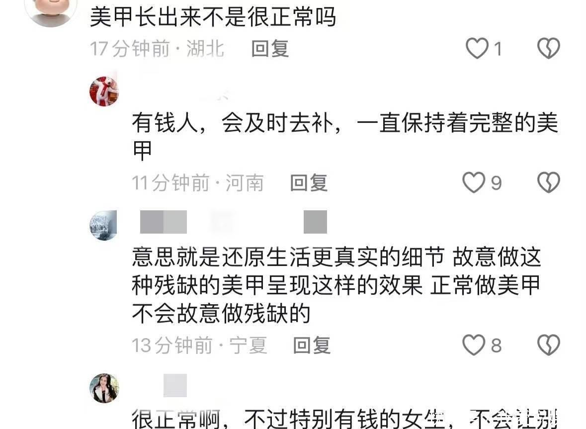 杨幂以身示范,电影中为我方的形象献言献计,说有许多女生因为忙碌的日程莫得饱和时分关注指甲,导致一些女生的好意思甲消灭或梗阻。因此,为了愈加着实,她还条目化妆师为她画了一个颓残的好意思甲。