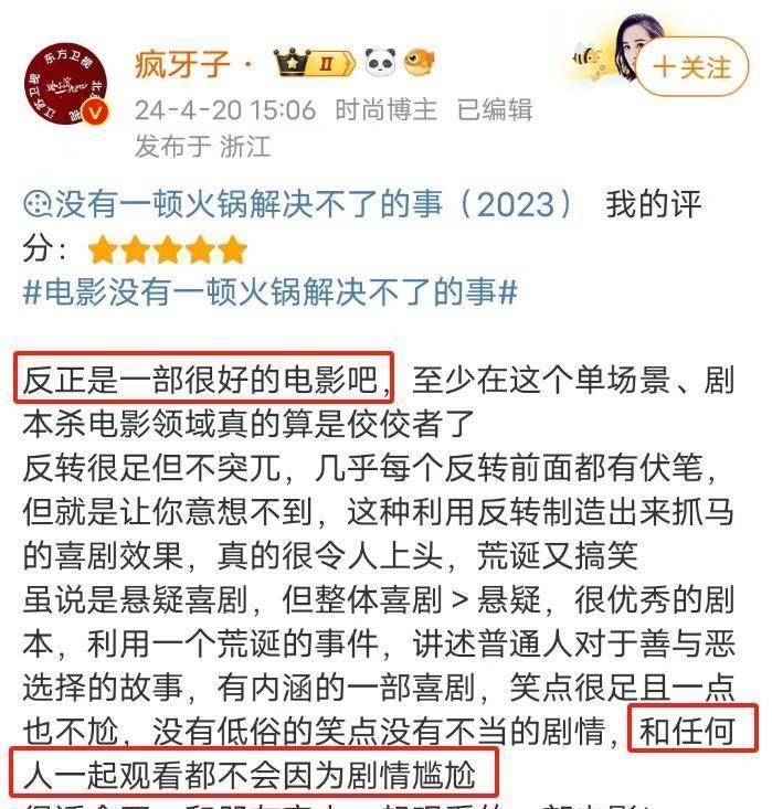 浏览正在上映的《莫得一顿暖锅处置不了的事》驳斥区,发现驳斥者们都大概提供充分而合理的评价,他们抒发了我方心爱这部电影的原因,触及到故事情节、演员演技和镜头艺术等方面。这些驳斥是着实的,真确不雅影过的东说念主才调写出。